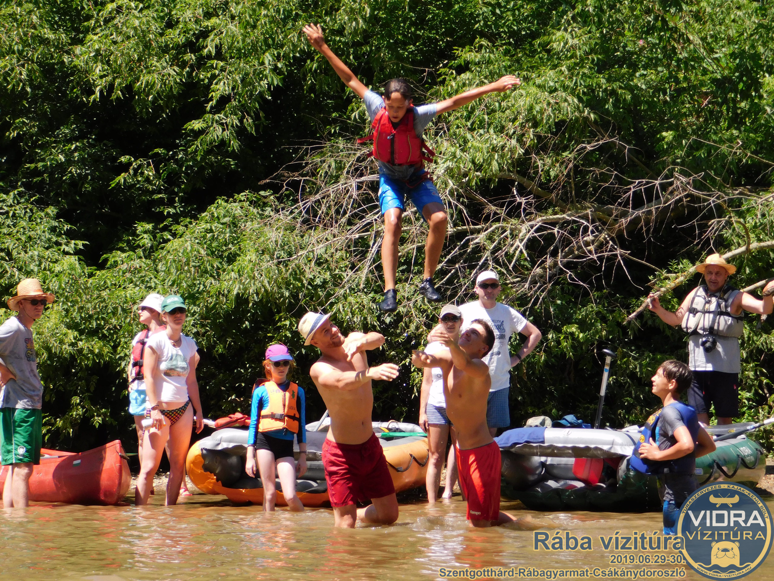 Általában a Rába túrákon kenukkal és kajakokkal evezünk, de igény esetén könnyű vadvizes-családi rafting túrát is szervezünk a Rábán. Ezt kisgyermekes családoknak, bátortalanabb felnőtteknek, vagy csapatépítési cél esetén, illetve magas vízállásnál ajánljuk, javasoljuk.